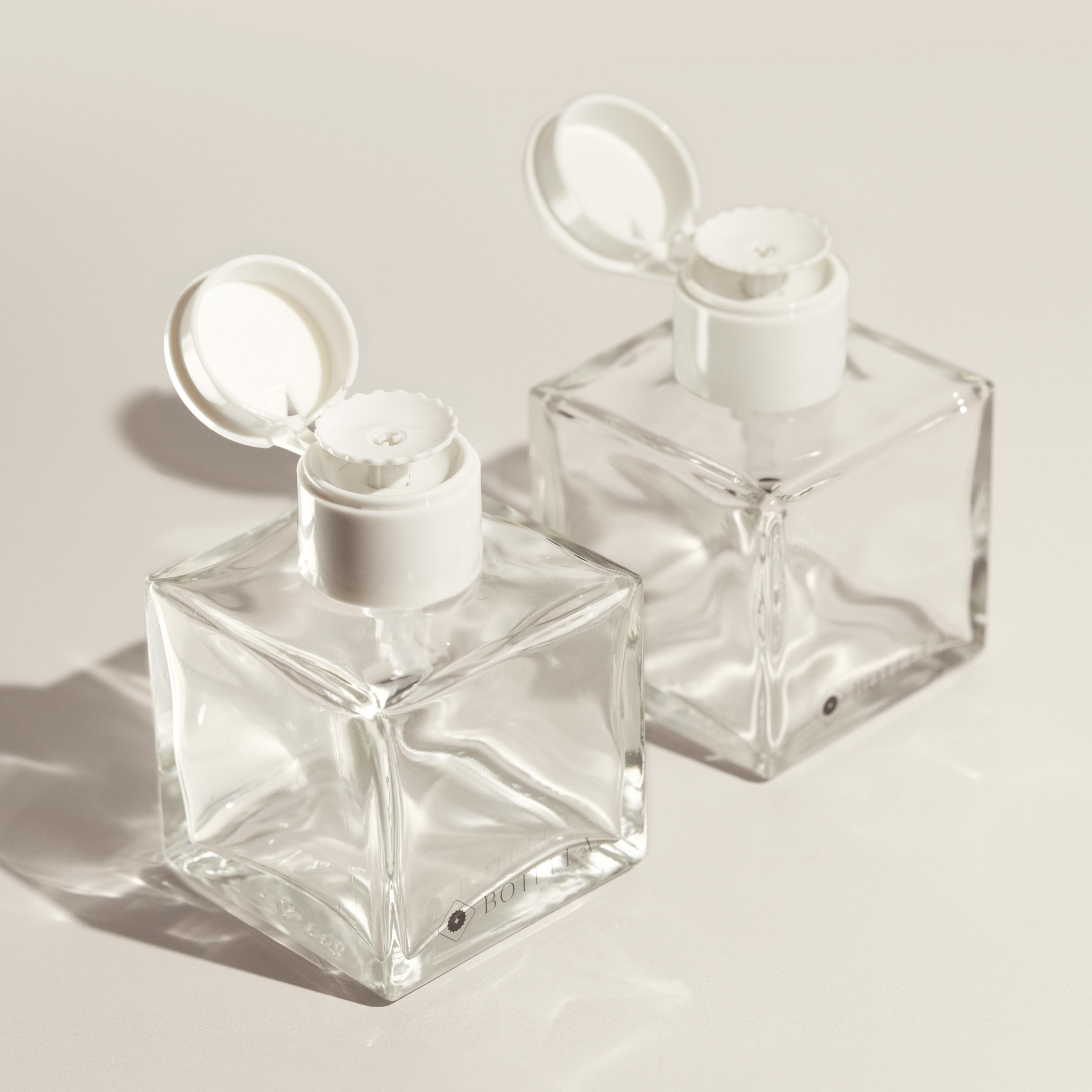 Fyrkantig pump-dispenser i glas DUO